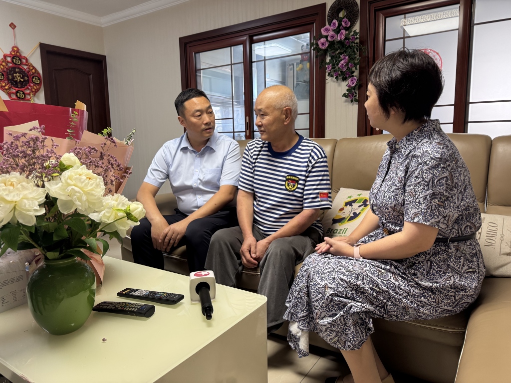10月9日,中央政法委发布2025年第二、三季度见义勇为勇士榜,上海81岁退伍老兵孙灶立因勇救落水老人的壮举光荣上榜。10月10日下午,上海市退役军人事务局、杨浦区退役军人事务局工作人员专程登门看望这位“上海模子”并送上鲜花,致敬他刻在骨子里的军人担当。孙灶立也特意换上海魂衫,以最精神的面貌迎接这份荣誉。