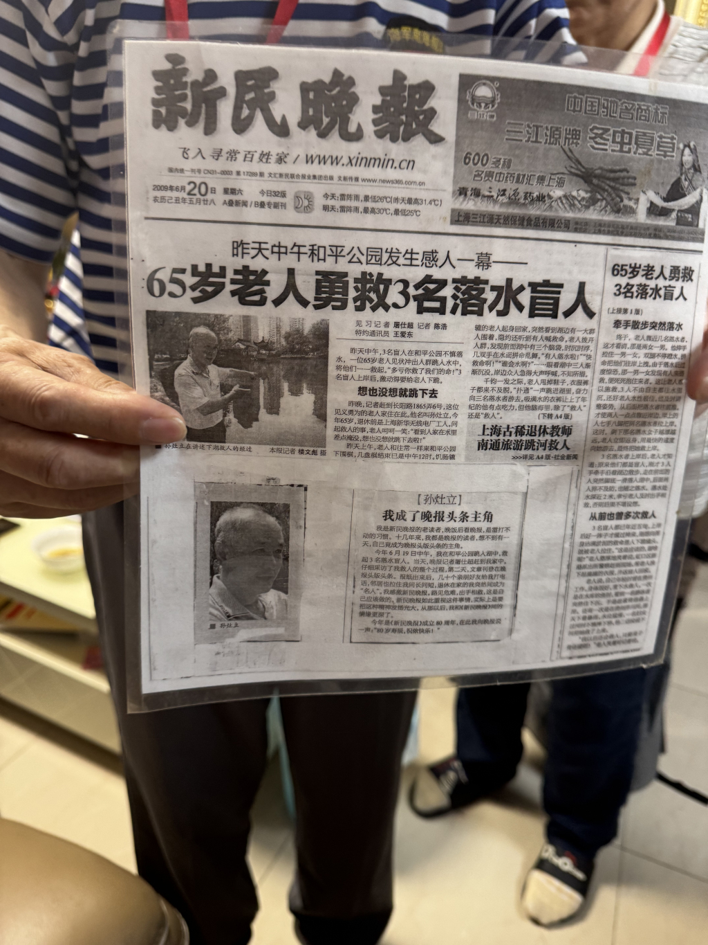 “他救人是'爱好',从年轻到80岁,还要到100岁。”女儿的调侃里藏着骄傲,却也难掩担忧——父亲孙灶立患有糖尿病,今年春节前刚出院,家人也担心他再做危险的事。但孙灶立从未有过后怕。“每天我还是会去杨浦公园锻炼,生活有规律,身体才能撑住。”他说,自己救人有个前提,“我会游泳,有把握才跳,不会水的人千万别冒险”。在孙灶立心里,救人不是一种选择,而是本能,是生命里不可分割的一部分。