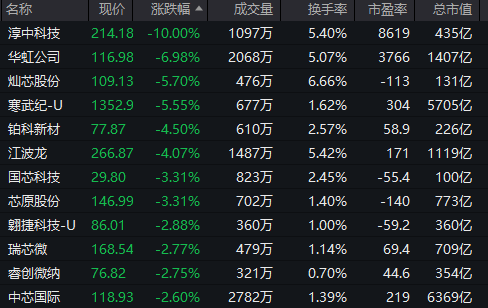 ASIC芯片指数走低,跌停,跌近7%,、、等跟跌。